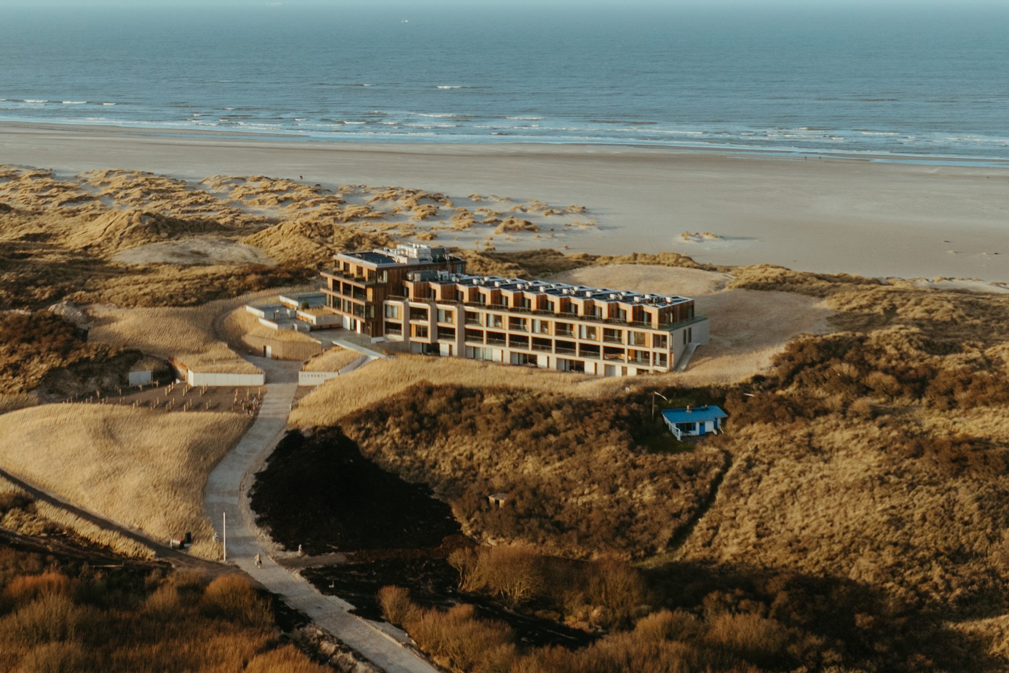 Elements beschikt over stijlvolle hotelkamers en ruime appartementen voor vier tot zes personen. Alle accommodaties hebben een balkon of terras met wijds uitzicht op het duinlandschap, het uitgestrekte strand en de Noordzee.